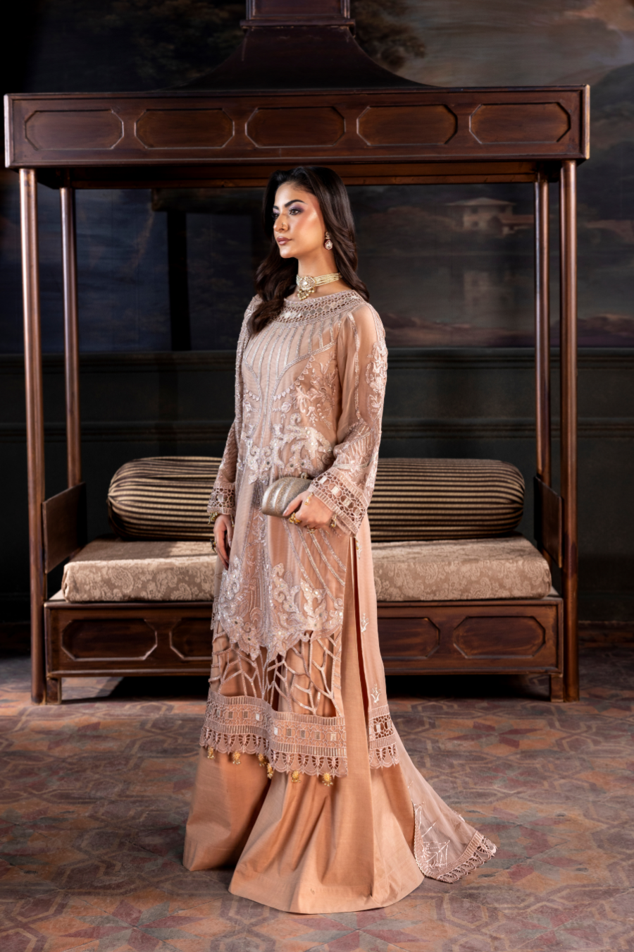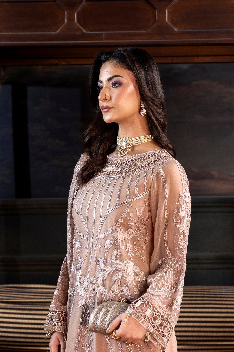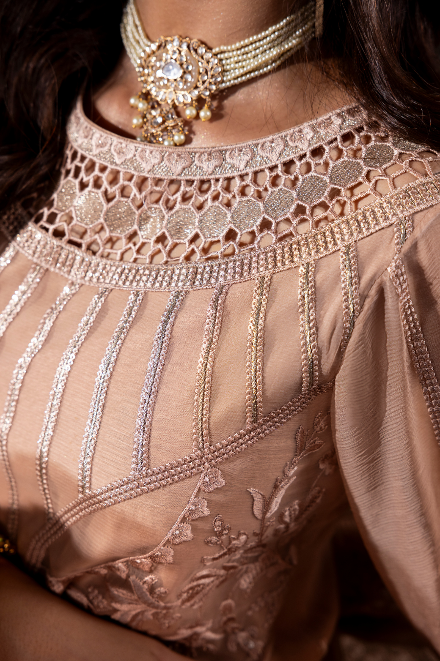 Embroidered chiffon four-sided border ready dupatta: 2.5 yds.