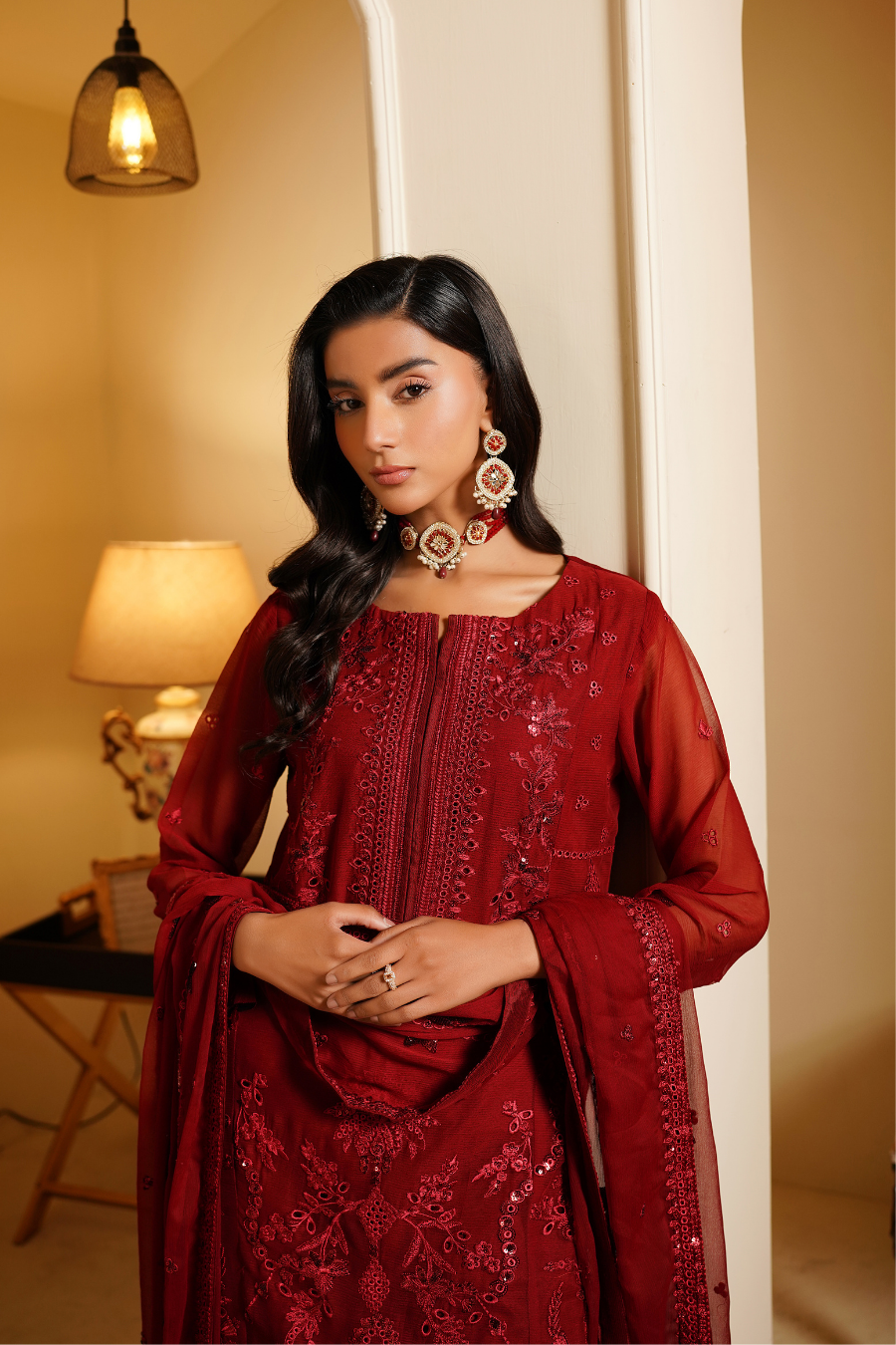 Embroidered weightless chiffon four side boder ready dupatta 2.5 yds