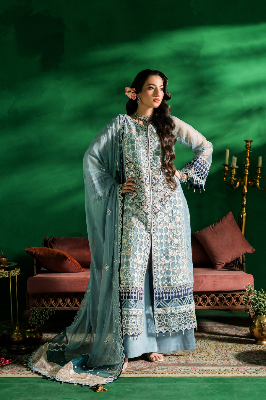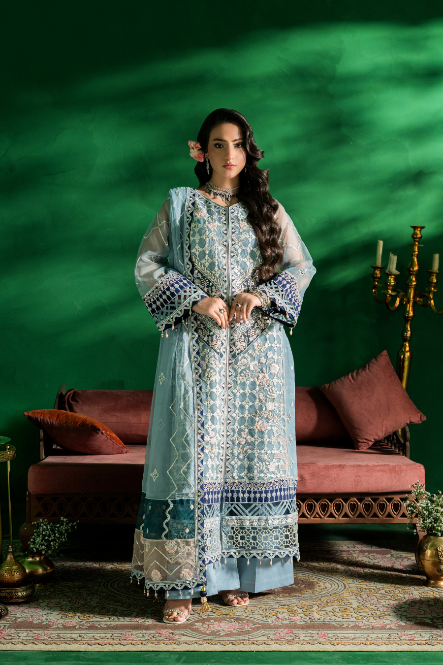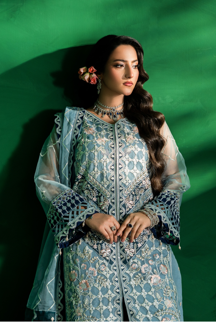 Embroidered weightless chiffon four side