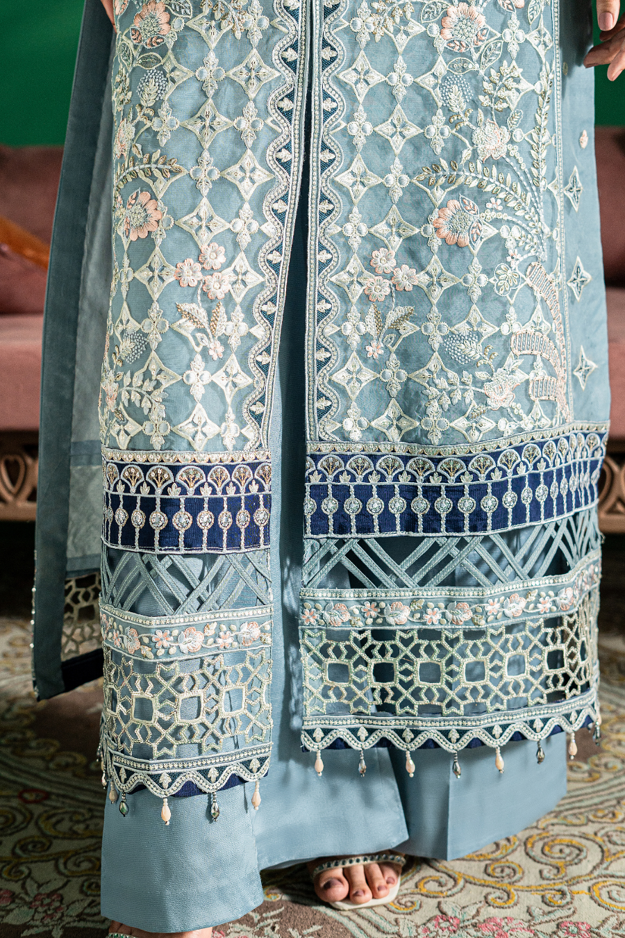 Embroidered ghera lace 64 inch