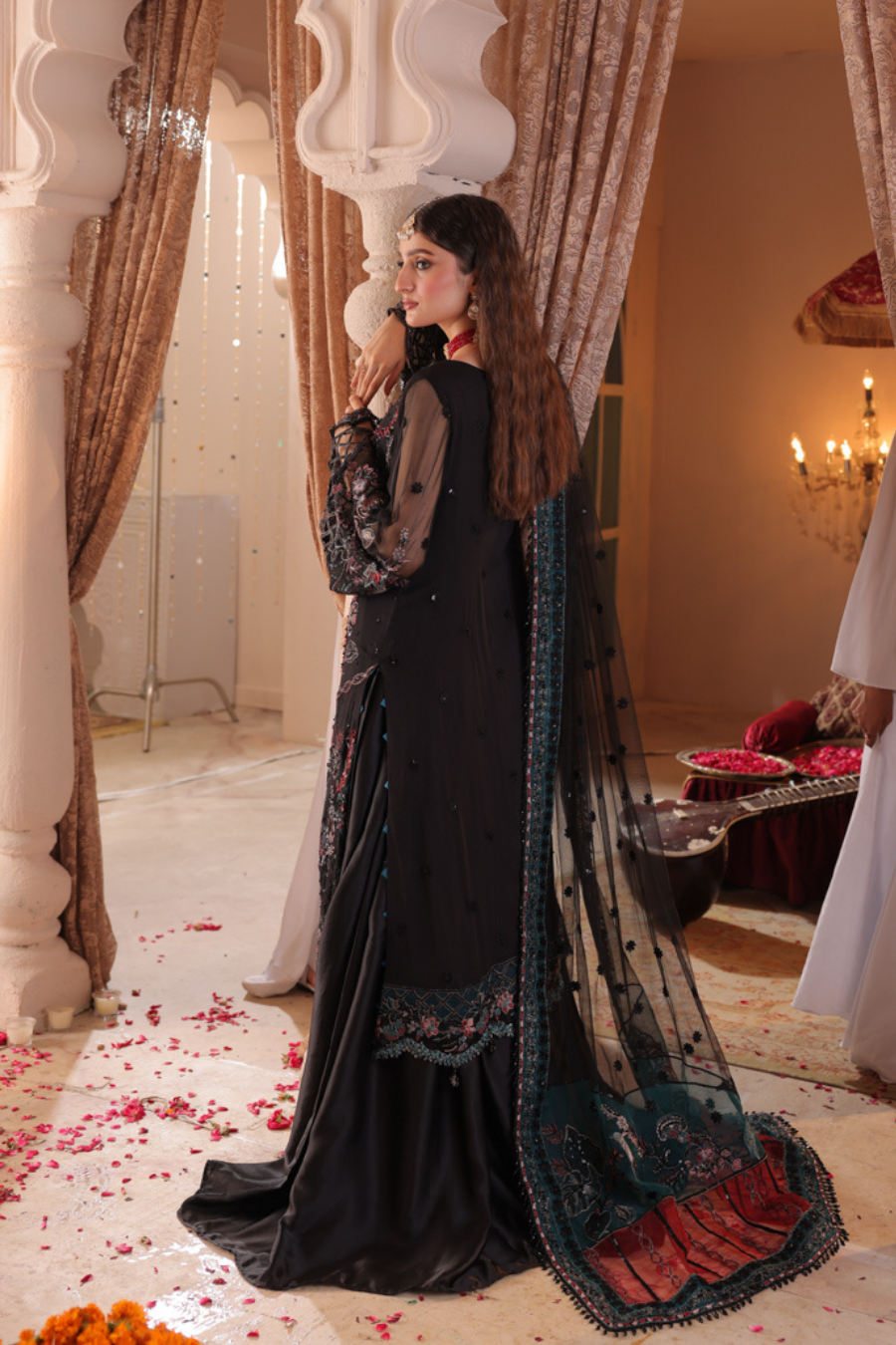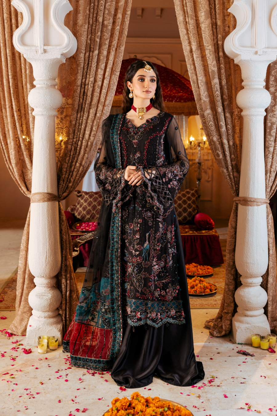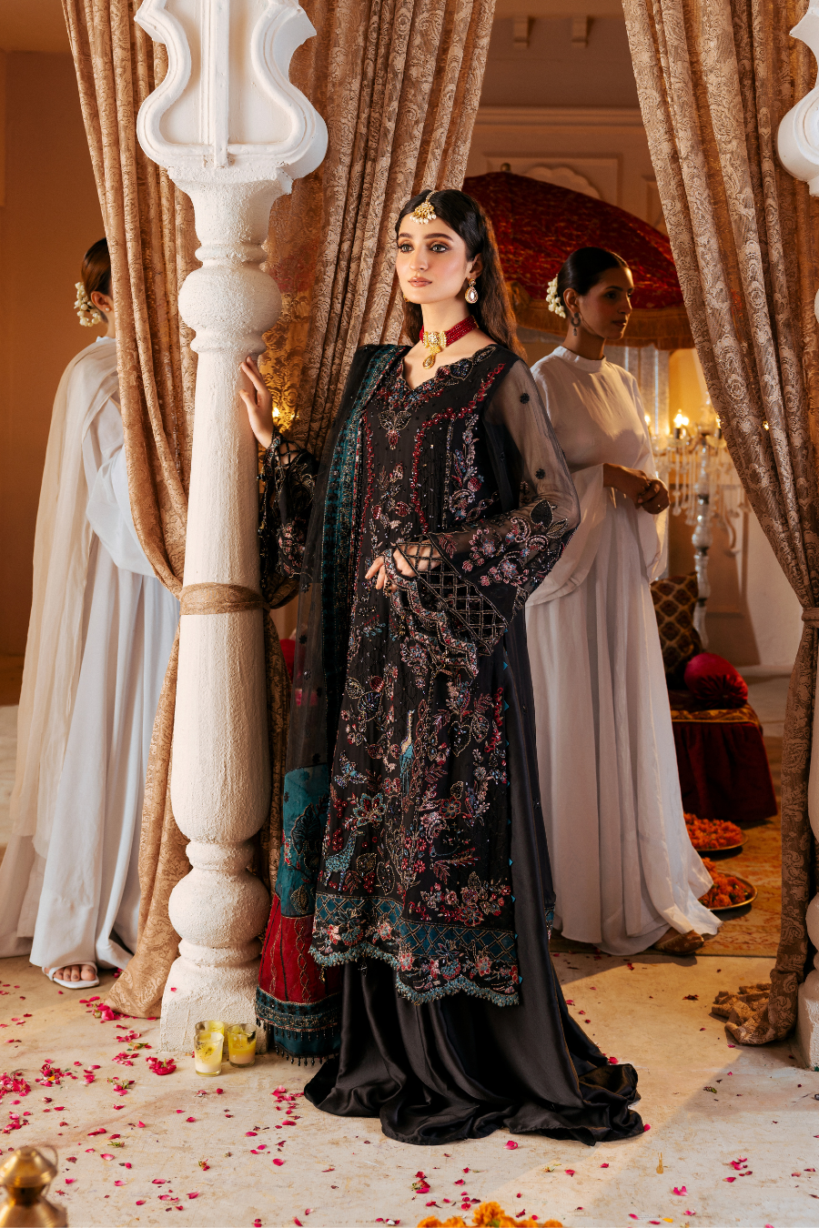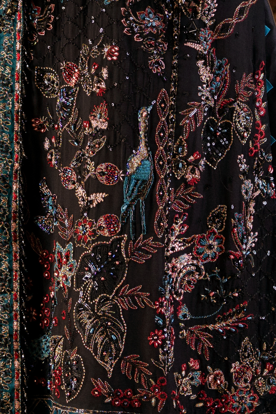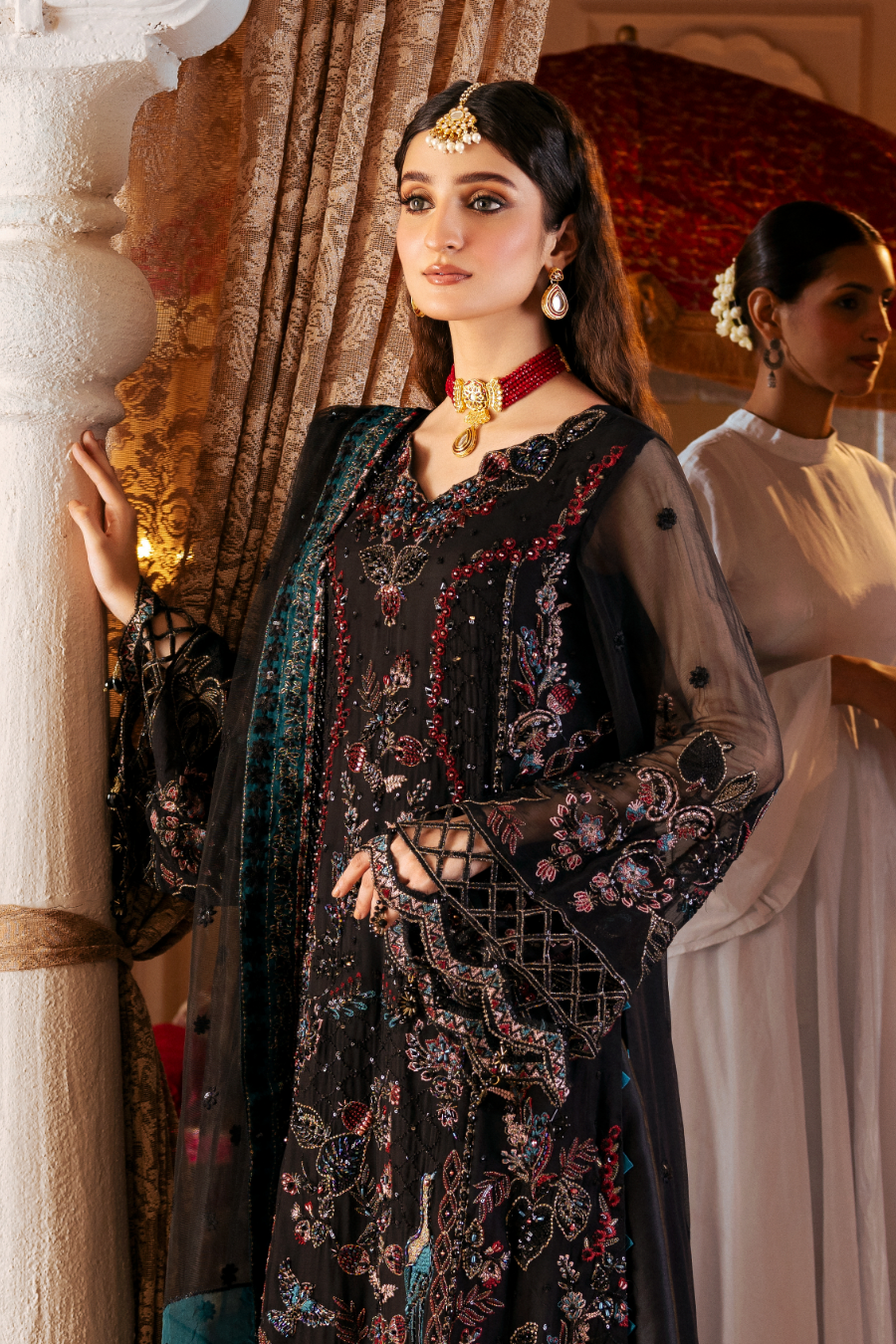 Tailored in a deep black base that enhances the embroidery’s artistry, MAHPARA ZQ-06 radiates sophistication. The luxurious fabric, ornate detailing, and flattering silhouette ensure you remain the center of attention at every celebration.