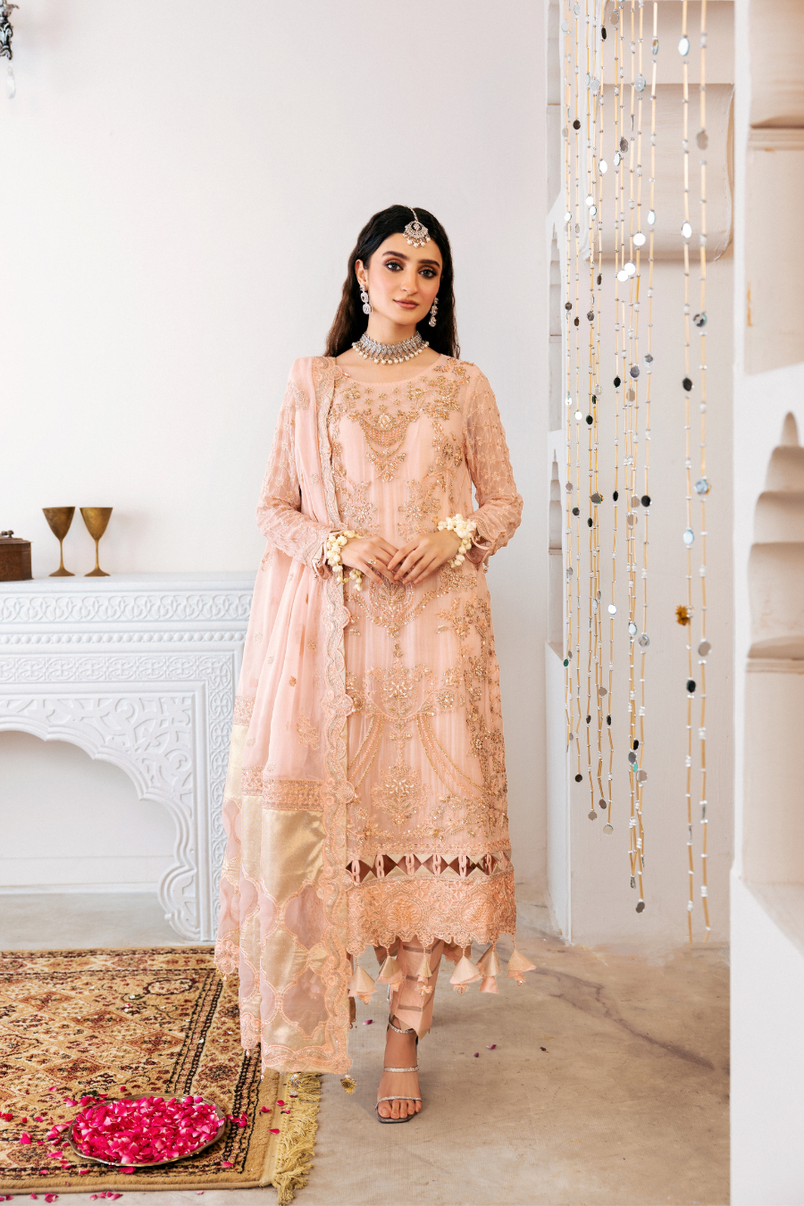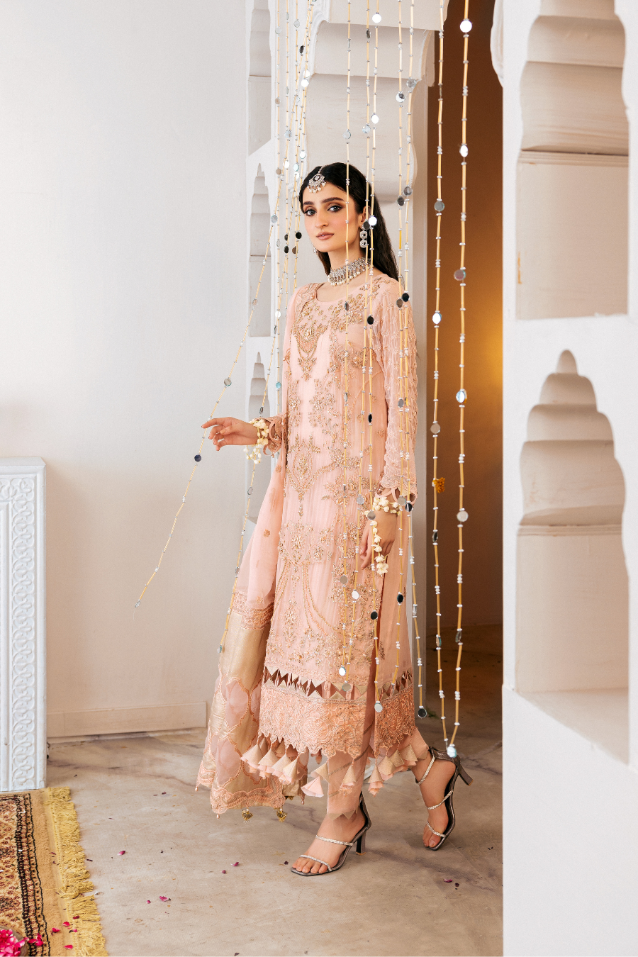 Embroidered chiffon four side border ready dupatta 2.5 yds