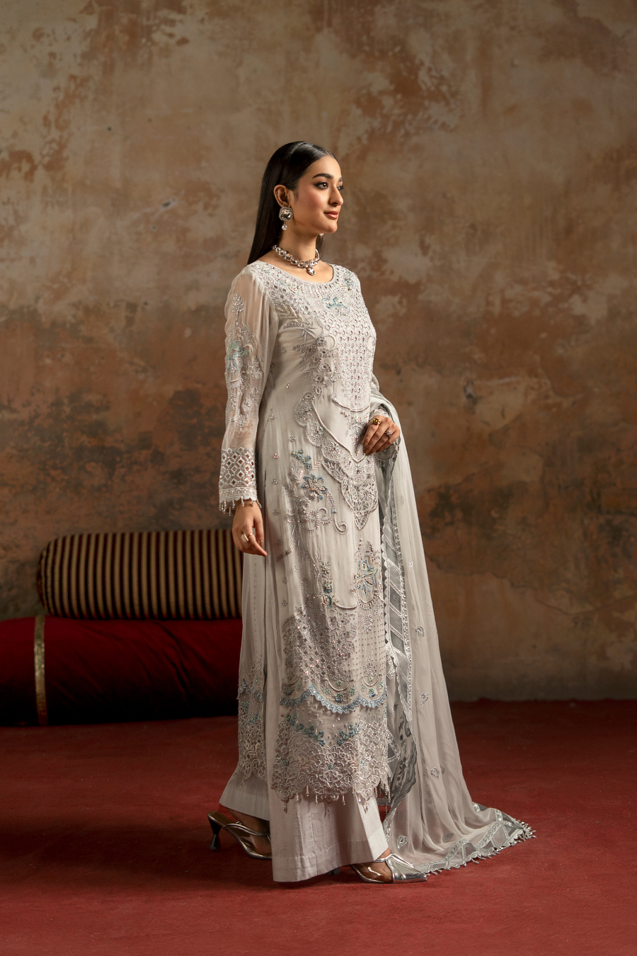 Embroidered chiffon four side boder ready dupatta 2.5 yds