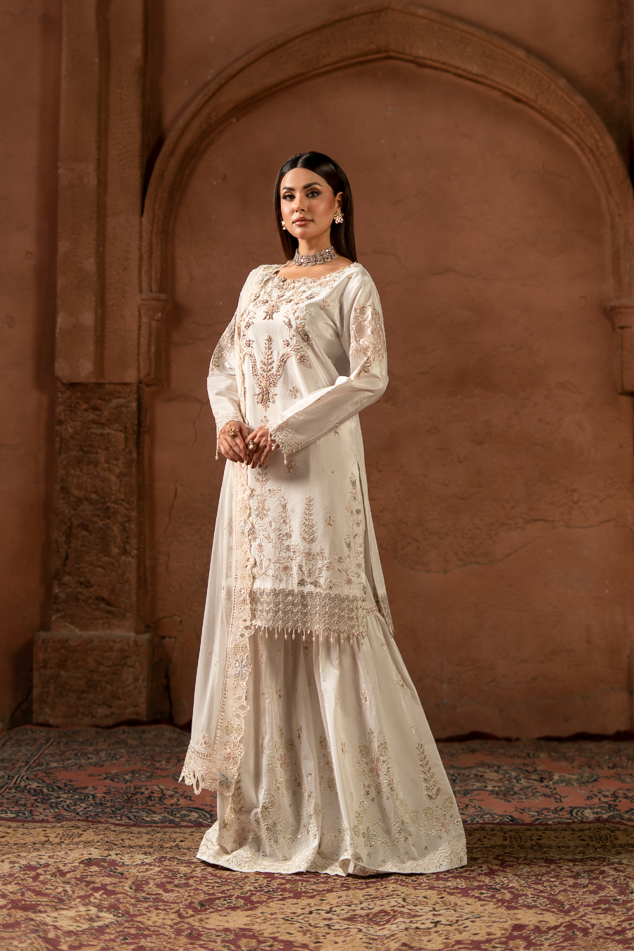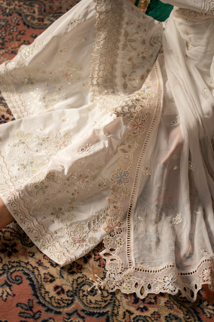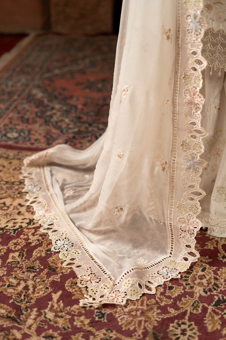 Embroidered chiffon four side boder ready dupatta 2.5 yds
